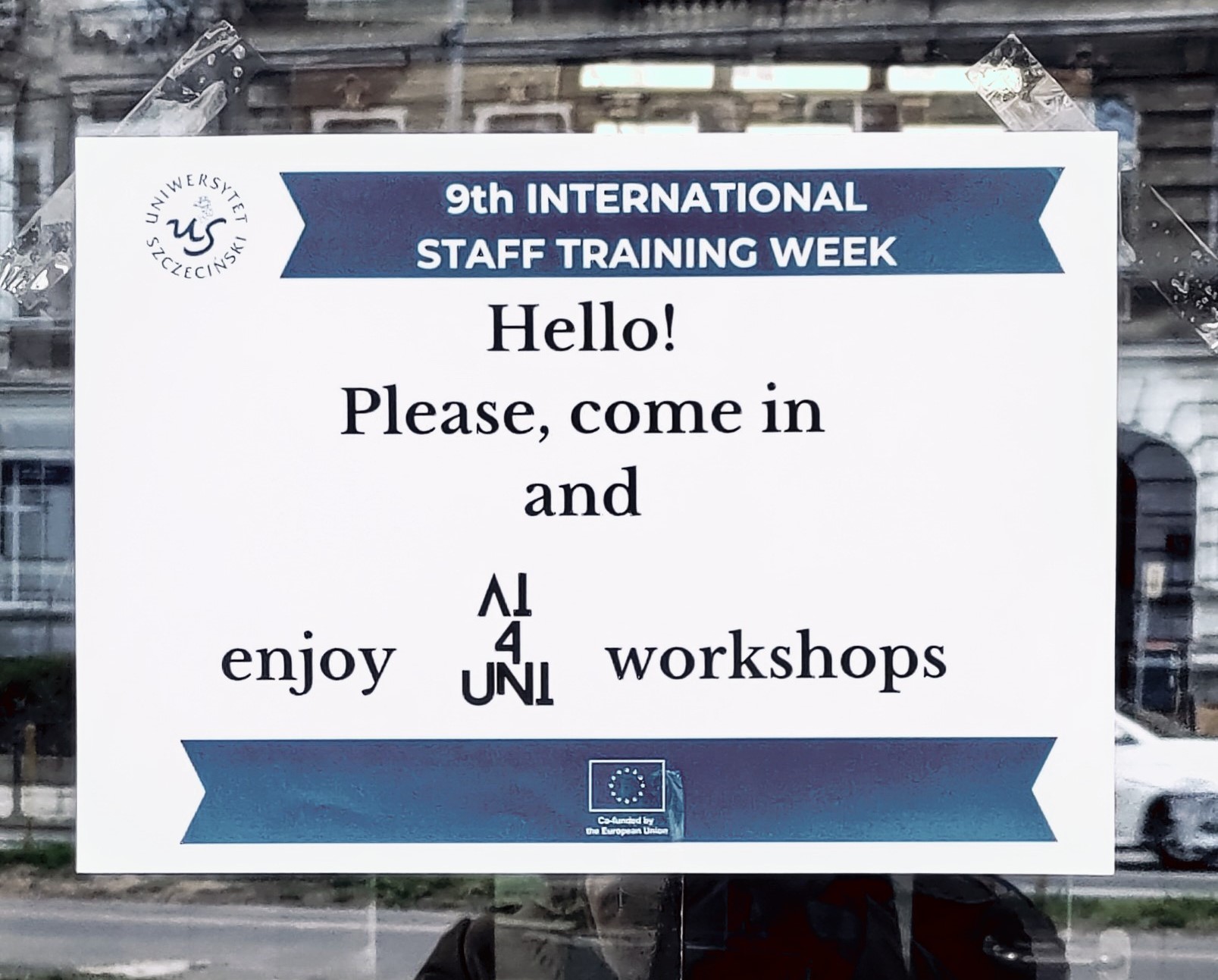 The University of Szczecin team did a test run of the AI4Uni workshops during the 9th International Staff Training Week. A short training session prepared by dr Tymoteusz Miller (USZ) was focused on sustainability and responsibility issues of AI. We received valuable feedback from the participants that will allow us to better plan training sessions for staff, and to meet their various expectations, needs and skills level.