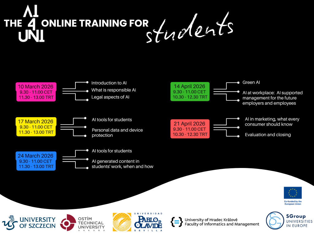 The AI4Uni team has created training modules for students and university staff. Main topic: AI literacy. Both training modules start in March 2026.